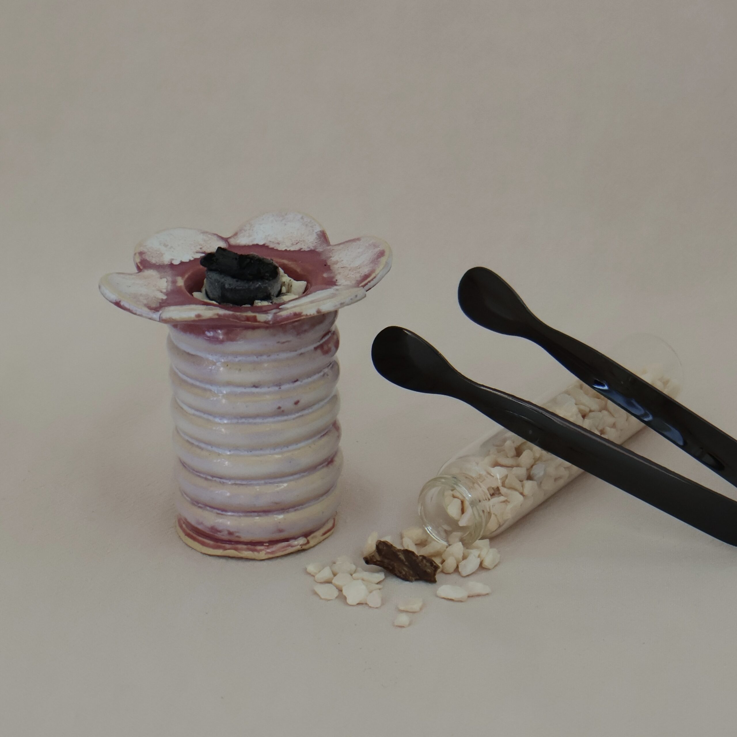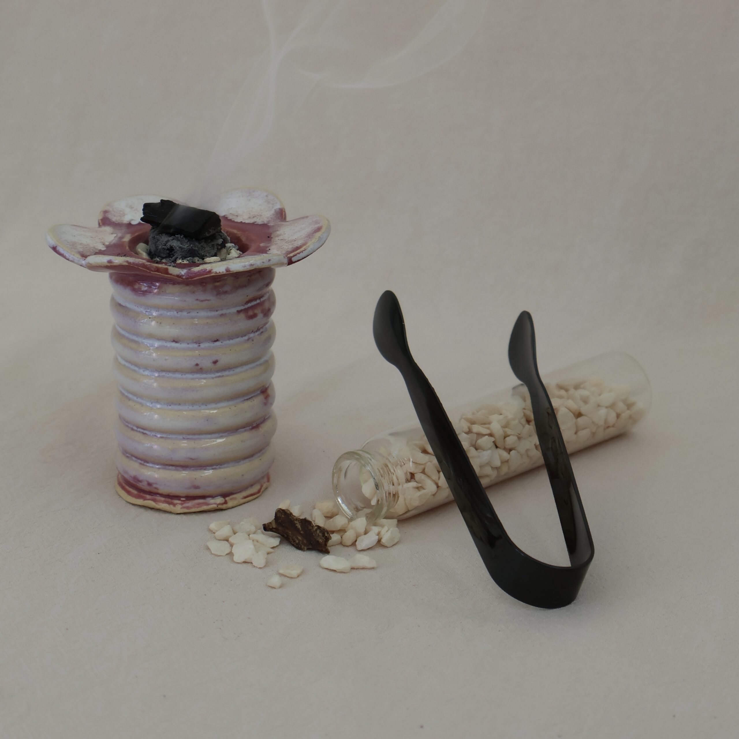 حصى أبيض صغير — يوضع في دائرة الفحم لتثبيت الفحم فوقها وضمان توزيع الحرارة بشكل متساوٍ